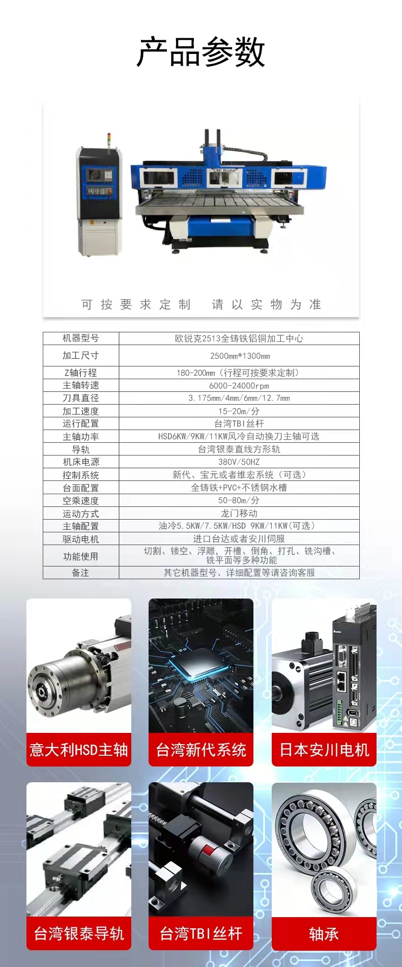 機器型號:歐銳克2513全鑄鐵鋁銅加工中心