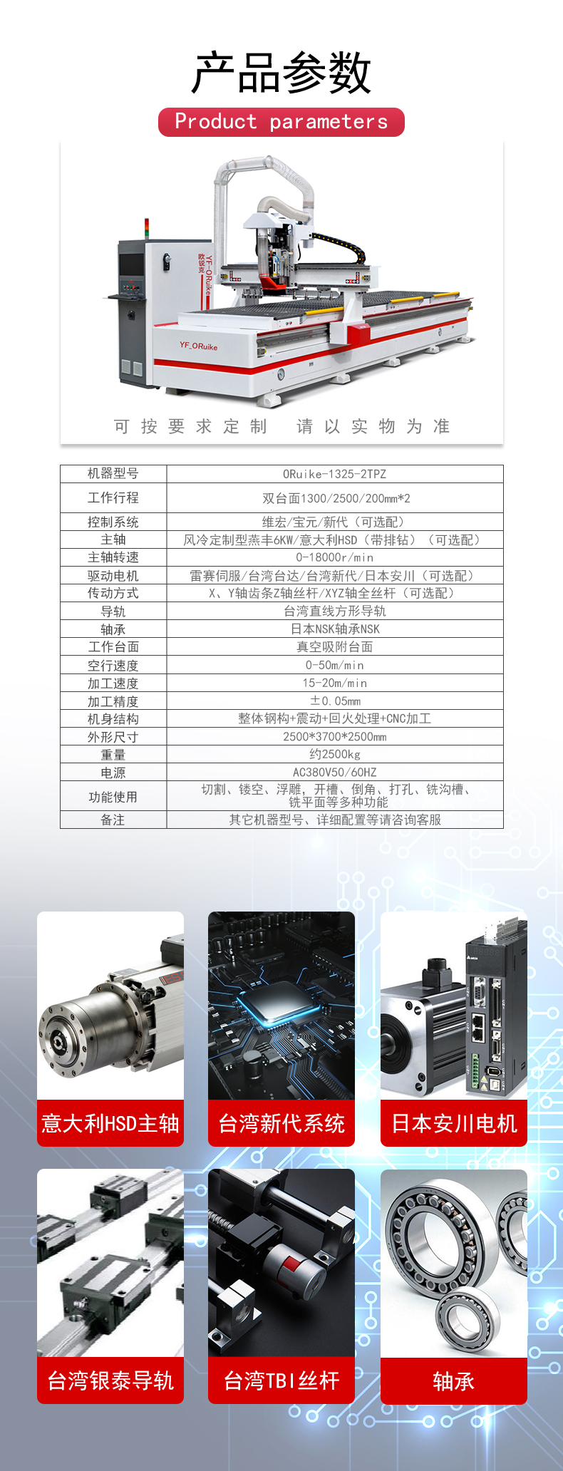 主軸功率:風(fēng)冷6kw/意大利HSD