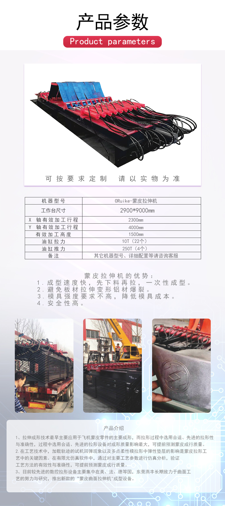 2340 曲面蒙皮拉伸機主要參數(shù)及配置: